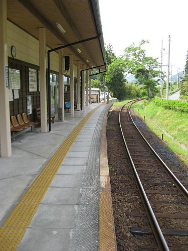 温泉の入口に電車が止まるんですよ