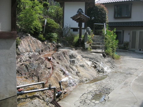 温泉を出た庭には源泉も