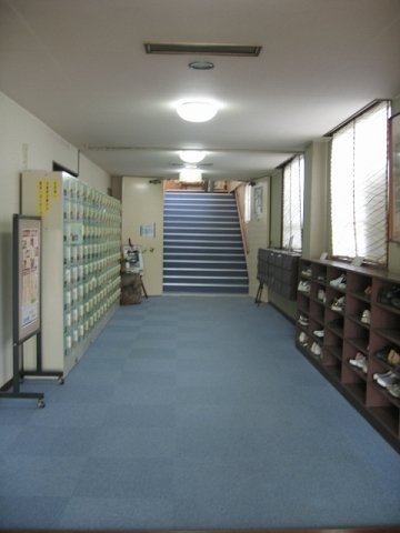 正面の階段を上がればフロントです