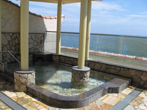 海の前に立つ この温泉は宿泊施設もあり また 隣は道の駅で