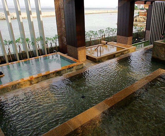 淡路棚田の湯」では名湯「洲本温泉」(単純弱ラドン泉)はもちろんのこと、敷地内に泉源を持つ独自の赤湯「古茂江温泉」(ナトリウム-塩化物強塩泉)や、良質の遠赤外線効果や殺菌効果で体の芯から健康になれる「竹炭の湯」など、3つの異なる湯を楽しむことができます。
