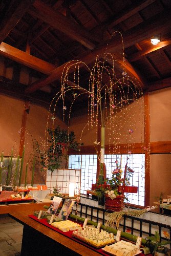 ここでも 4組で 床の間には縁起物のしだれ柳