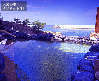柵もなく風呂の中に入ると 目線が海といっしょ♪