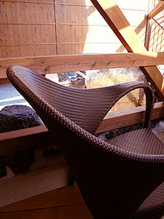 横に籐のテ-ブルセットが有り