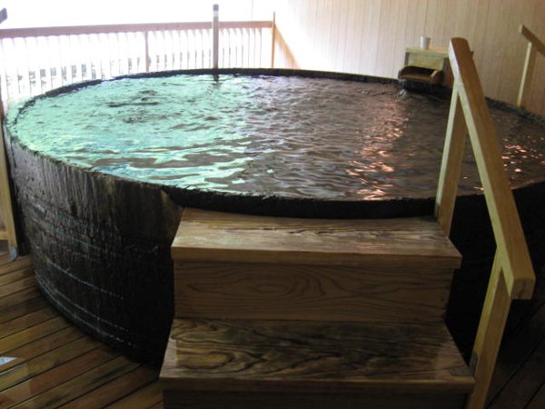 大きなタルのお風呂です ぬる湯なんで とっても気持ちよく入れました