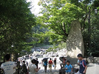 湯原は この砂湯が有名で ダムの下に温泉があり