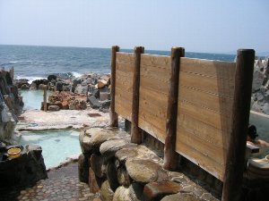 ここはそのまま海岸なんで 波が高いと温泉の中に波が入ります